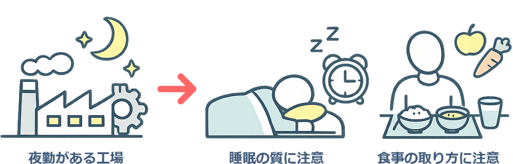 勤務形態に合わせた生活リズムを先に作ってください。